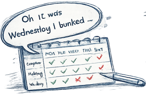 Let's be real — teachers don't always update attendance on time. So BunkMate lets you mark attendance temporarily.